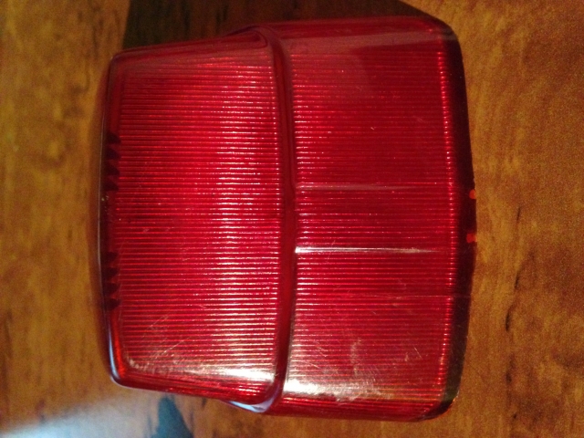 Hat einen Sprung an der Oberseite welcher jedoch kaum zu erkennen ist. Ansonsten ist das Rücklicht für dieses Alter in einem guten Zustand. Keine Ausbrüche.